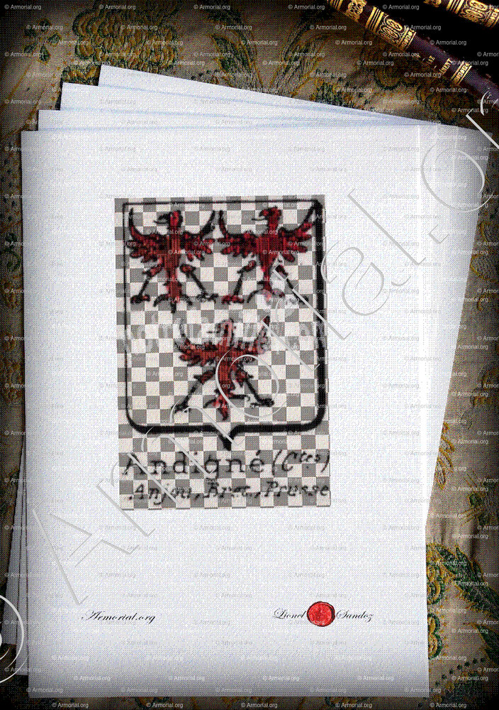 « Andigné (Ctes.) est un nom qui s’accompagne d’un blason » ( , )