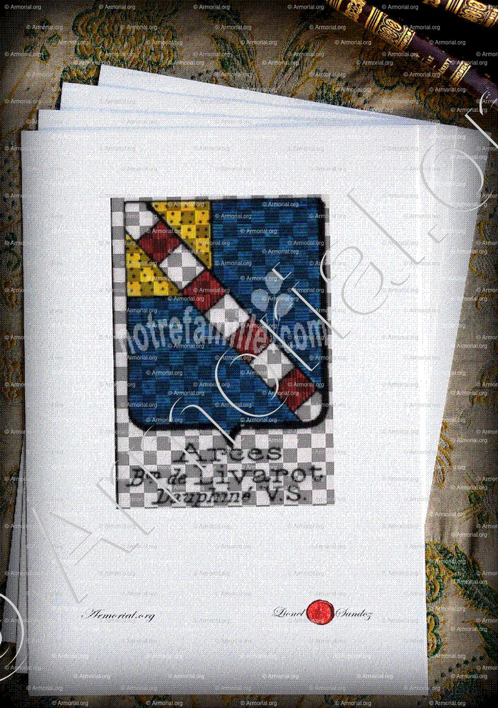 « Arces Bon. de Livarot est un nom qui s’accompagne d’un blason » ( , )