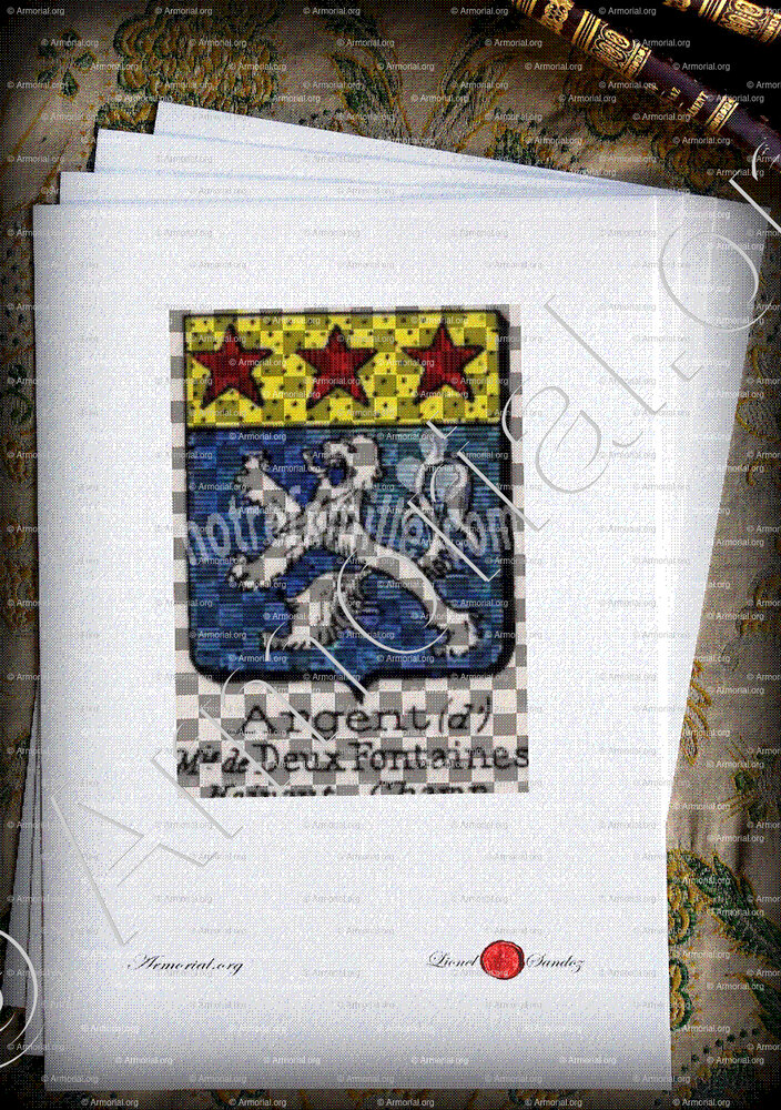 A la vérité, les Argent (d') Mis. Deux Fontaines ont, eux aussi, écrit l’histoire, à l’ombre de grands personnages ; et les armoiries Argent (d') Mis. Deux Fontaines ne suffisent pas à expliquer les raisons de votre curiosité.