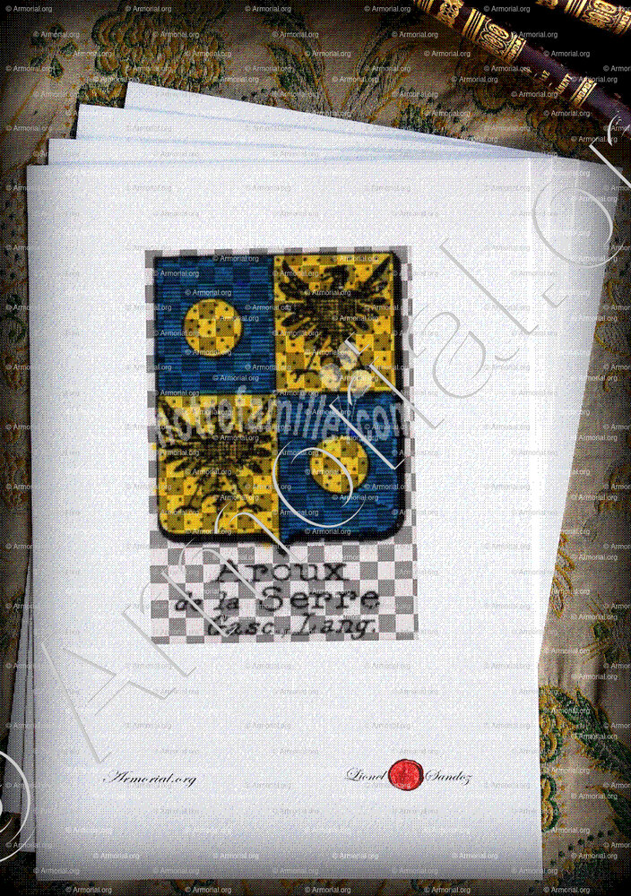 « Aroux de la Serre est un nom qui s’accompagne d’un blason » ( , )