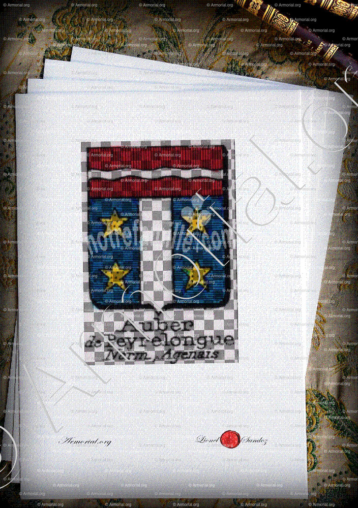 « Auber de Peyrelongue est un nom qui s’accompagne d’un blason » ( , )
