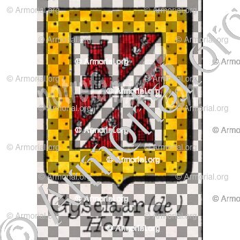 « Gyselaar (de) est un nom qui s’accompagne d’un blason » ( , )