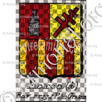 « Marca (à) est un nom qui s’accompagne d’un blason » ( , )