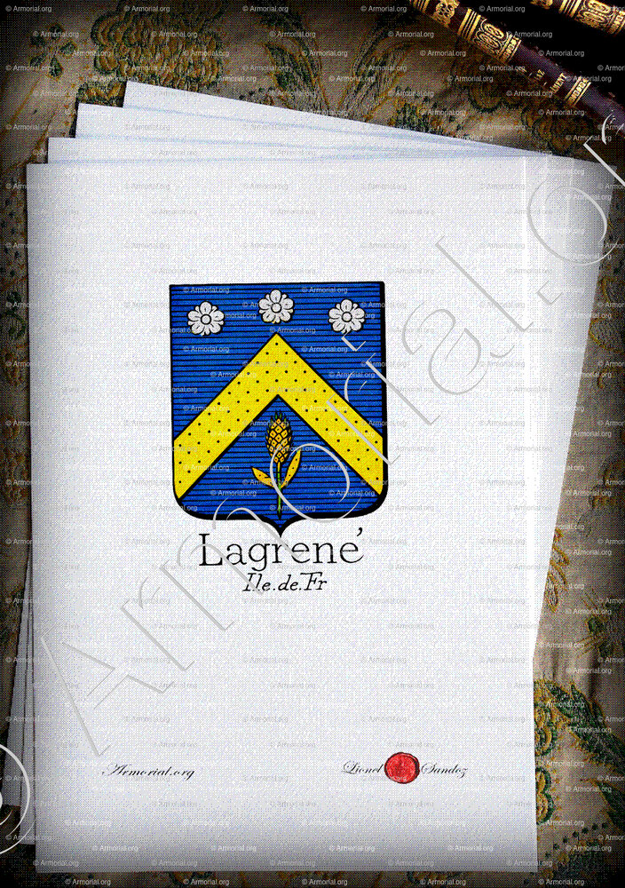 Les armoiries de la famille LAGRENÉ sont décrites comme suit :