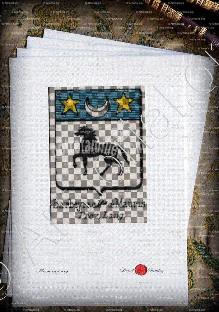 « Barbeyrac Mis. de Mauris est un nom qui s’accompagne d’un blason » ( , )