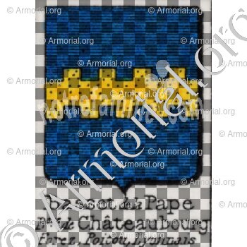 « Basset de la Pape Bons. de Châteaubourg est un nom qui s’accompagne d’un blason » ( , )