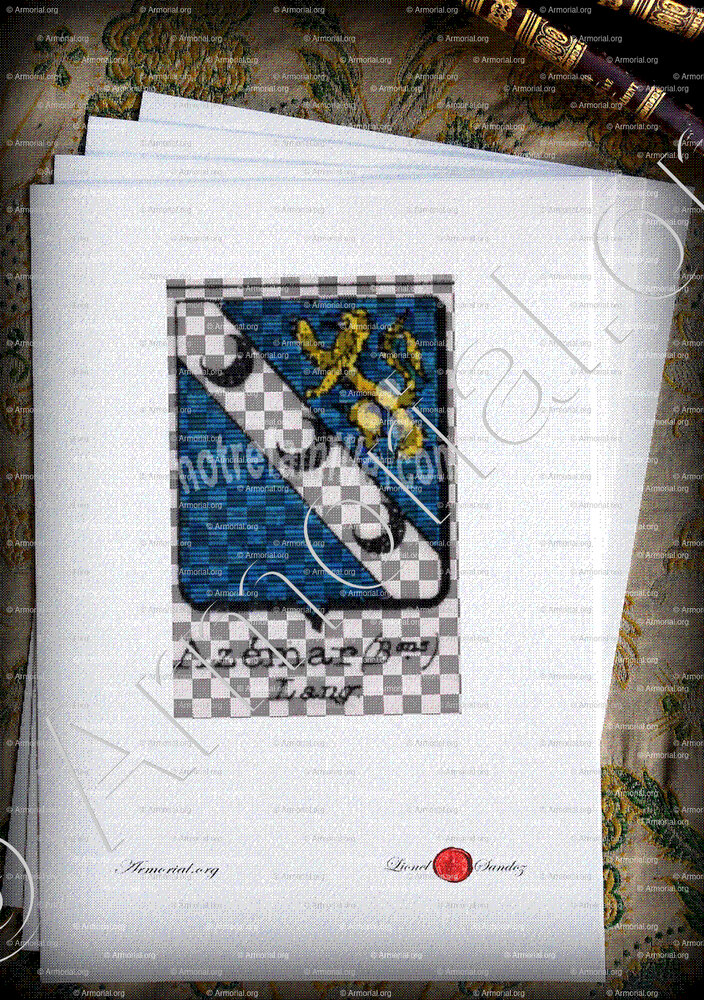 « Azémar (Bons.) est un nom qui s’accompagne d’un blason » ( , )