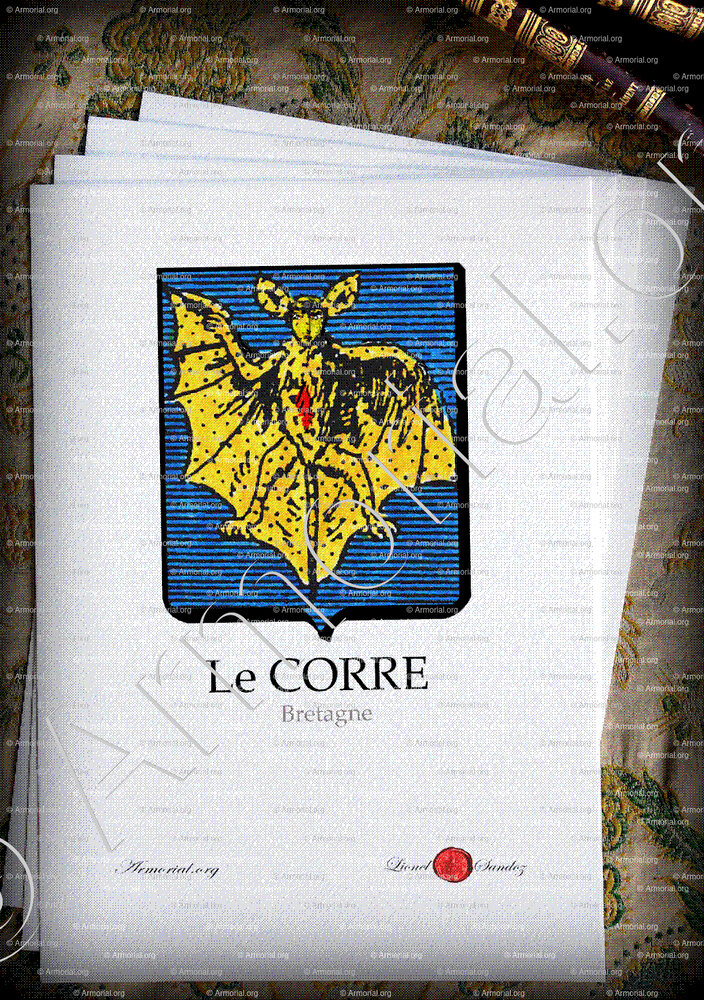 « Corre (le) est un nom qui s’accompagne d’un blason » ( , )