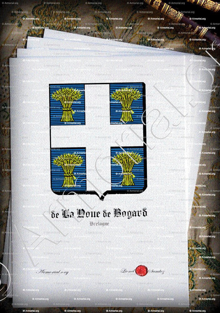« Noue (de la) de Bogard est un nom qui s’accompagne d’un blason » ( , )