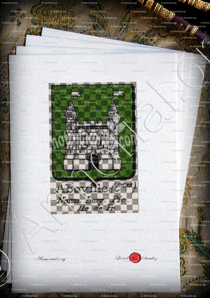 « Aboville (Ctes.) est un nom qui s’accompagne d’un blason » ( , )