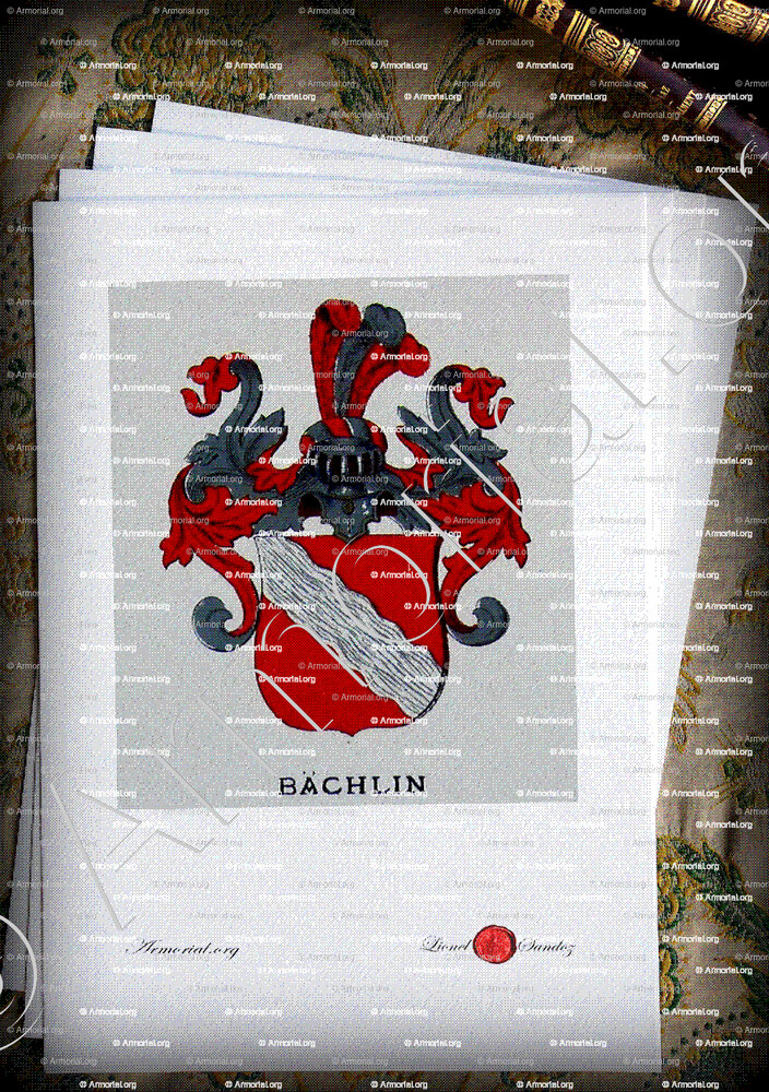 BÄCHLIN est un nom qui s’accompagne d’un blason » (Wappenbuch der Stadt Basel . B.Meyer Knaus 1880 , Schweiz)