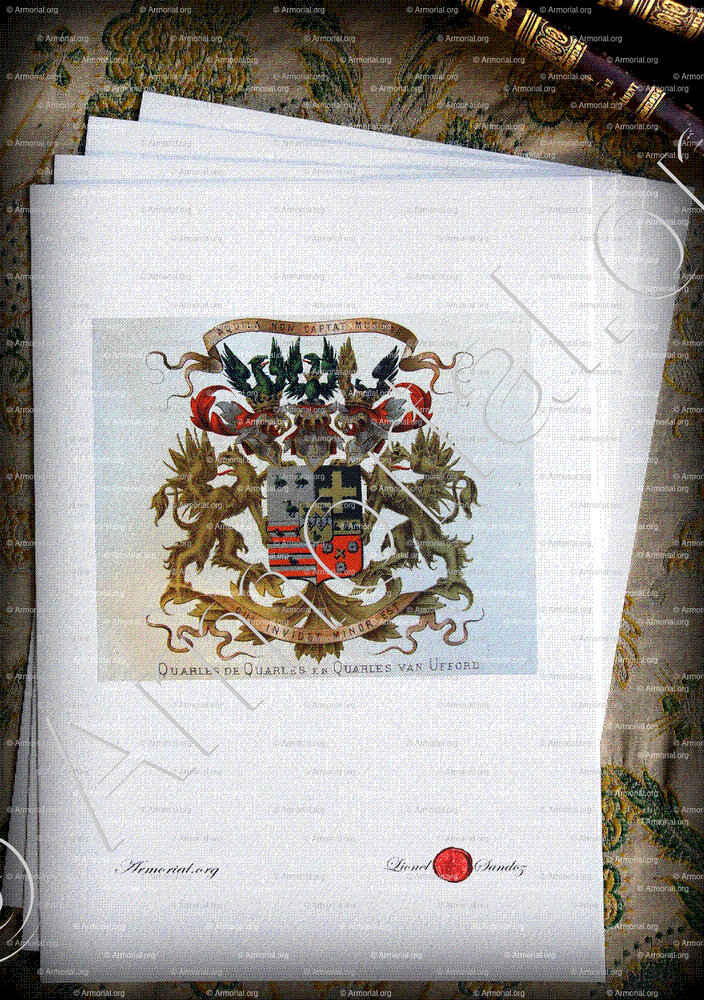 A la vérité, les QUARLES de QUARLES en QUARLES van UFFORD ont, eux aussi, écrit l’histoire, à l’ombre de grands personnages ; et les armoiries QUARLES de QUARLES en QUARLES van UFFORD ne suffisent pas à expliquer les raisons de votre curiosité.