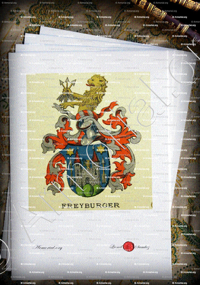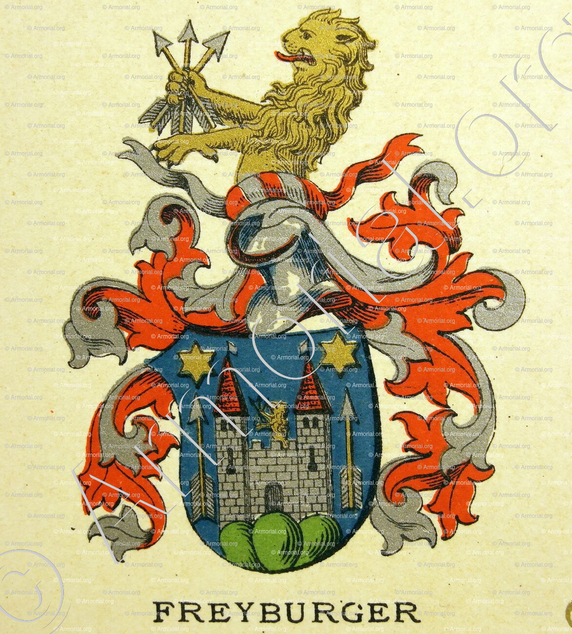 FREYBURGER est un nom qui s’accompagne d’un blason » originaire du canton de FREYBURGER, Schweiz.