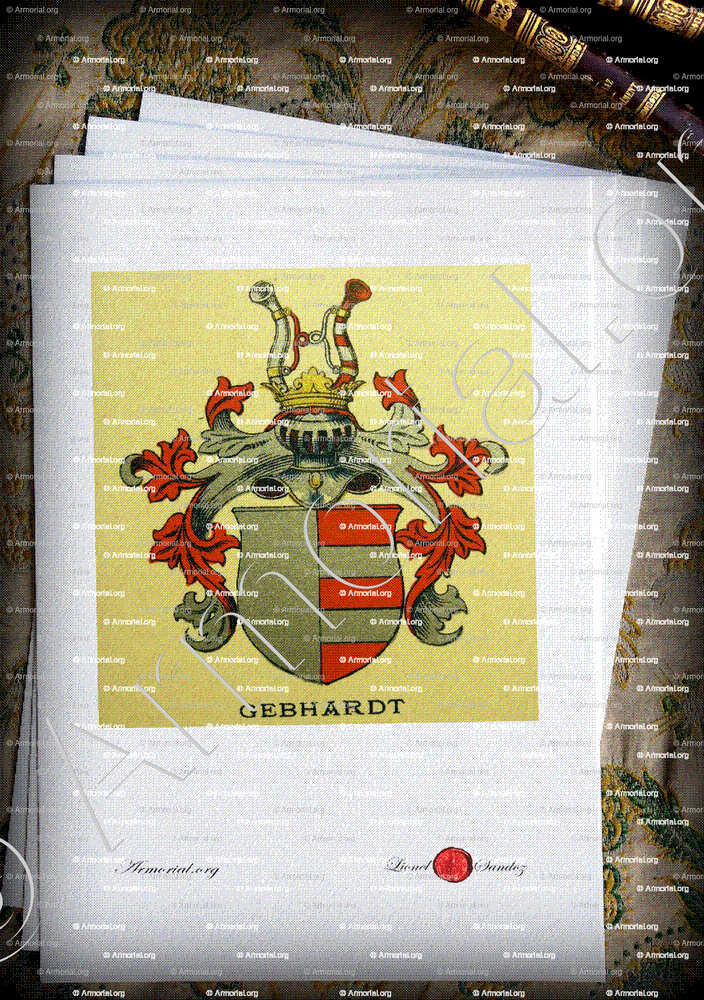 GEBHARDT est un nom qui s’accompagne d’un blason. Origine :Wappenbuch der Stadt Basel . B.Meyer Knaus 1880, Schweiz