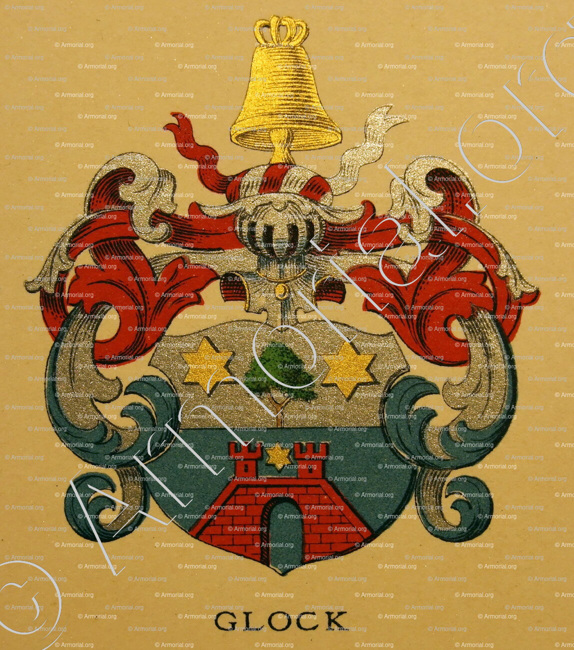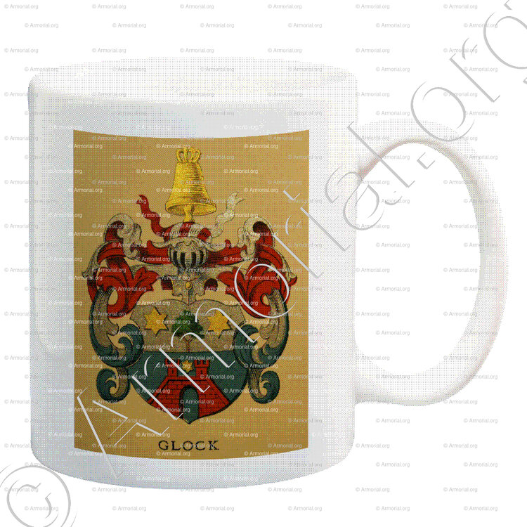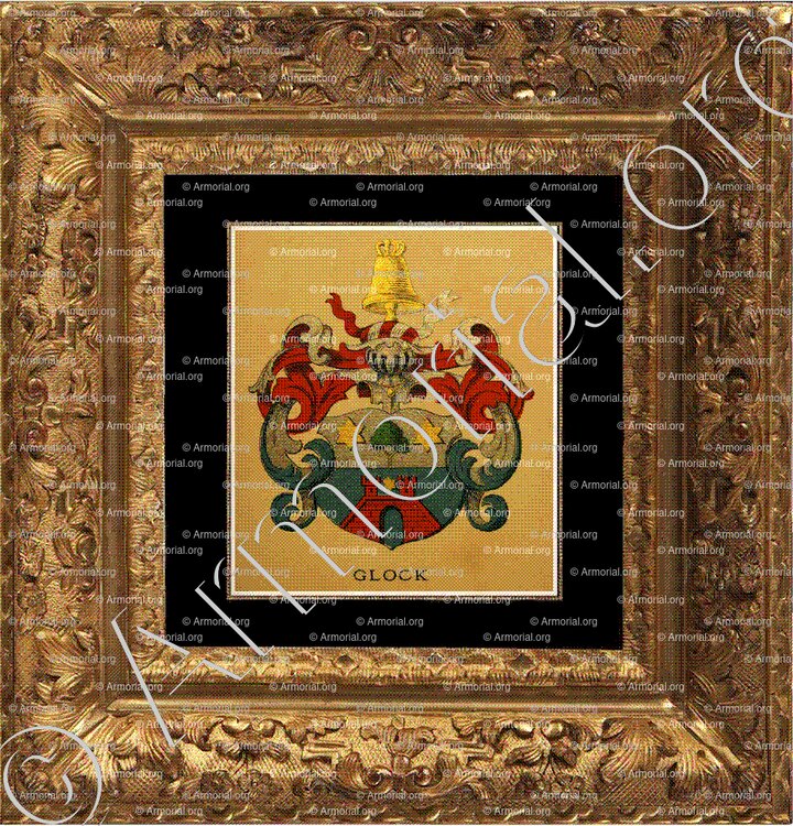 GLOCK est un nom qui s’accompagne d’un blason. Origine :Wappenbuch der Stadt Basel . B.Meyer Knaus 1880, Schweiz