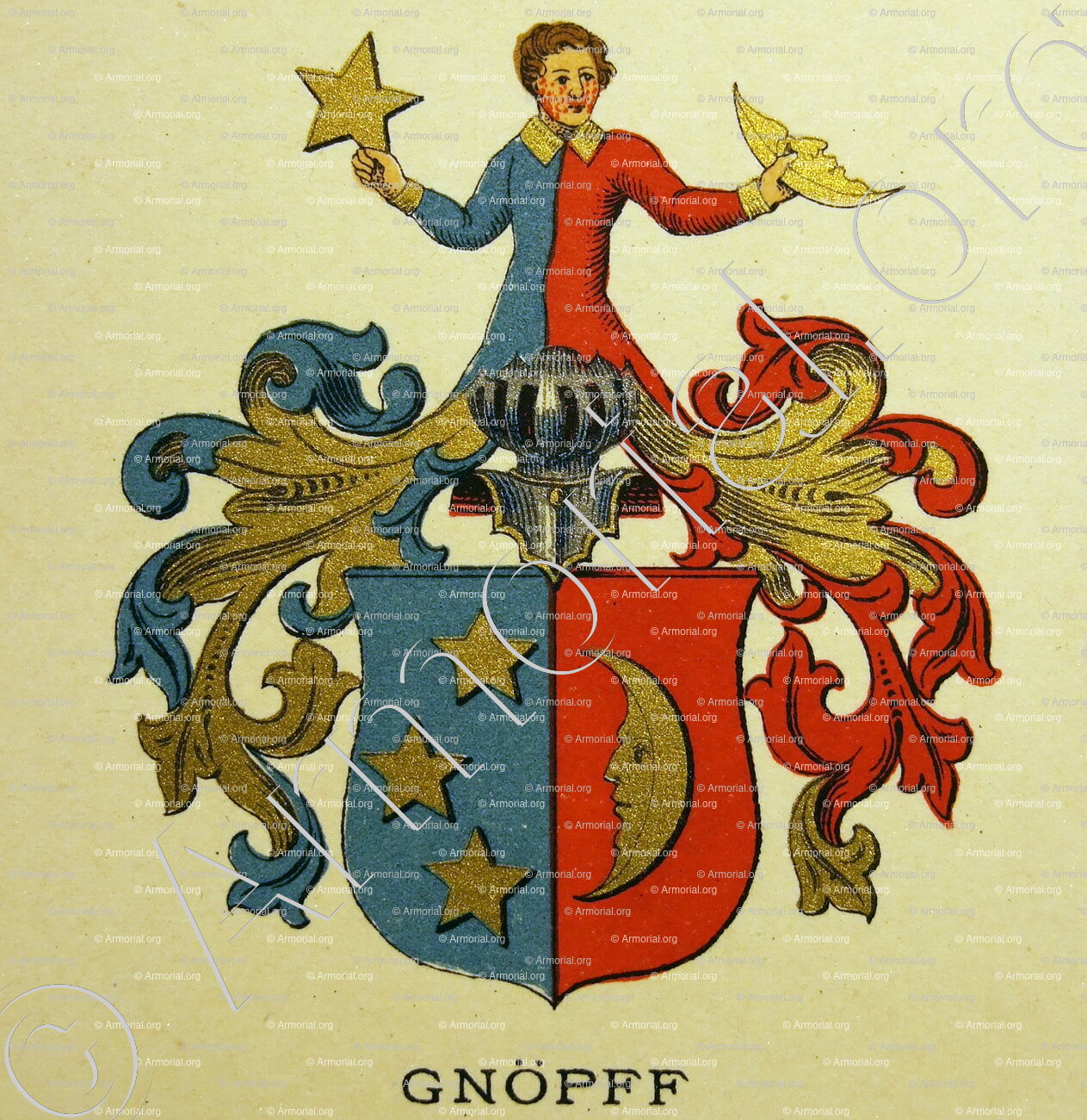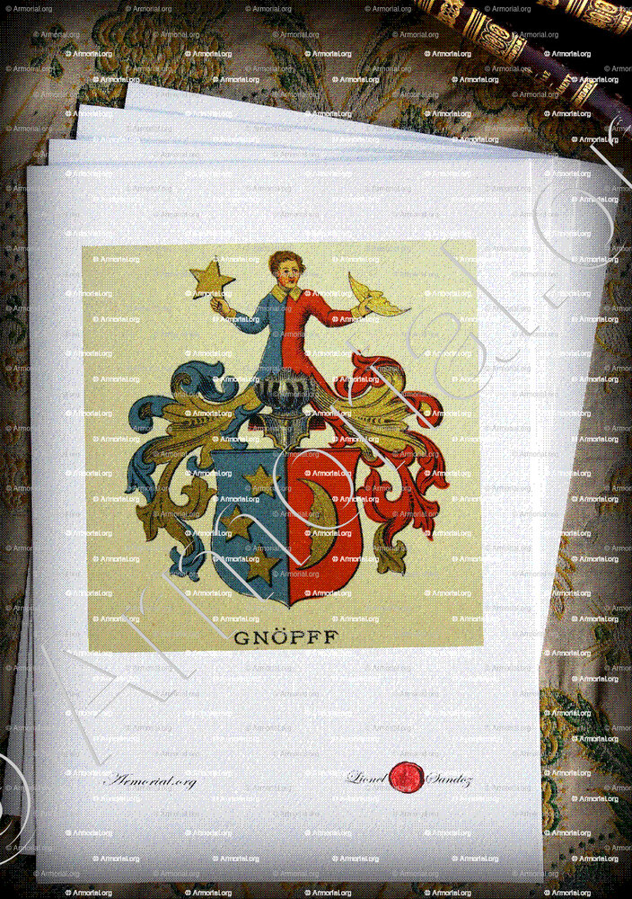 GNOEPF est un nom qui s’accompagne d’un blason. Origine :Wappenbuch der Stadt Basel . B.Meyer Knaus 1880, Schweiz