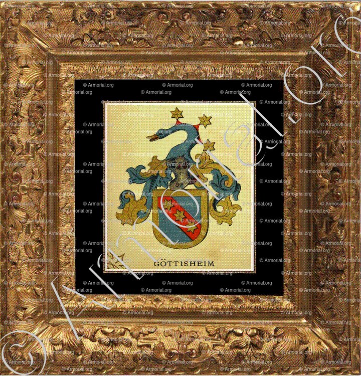 GOETTISHEIM est un nom qui s’accompagne d’un blason. Origine :Wappenbuch der Stadt Basel . B.Meyer Knaus 1880, Schweiz