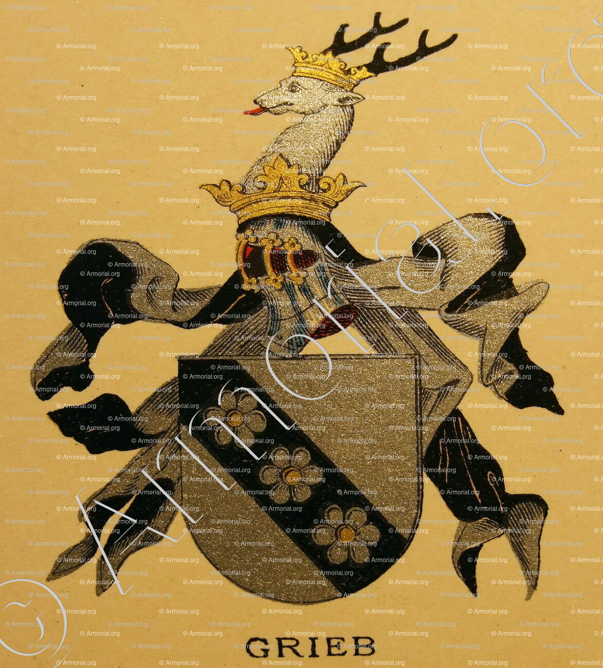 GRIEB est un nom qui s’accompagne d’un blason. Origine :Wappenbuch der Stadt Basel . B.Meyer Knaus 1880, Schweiz