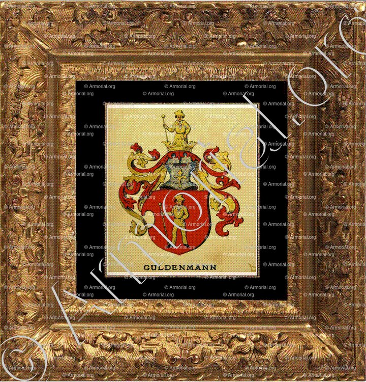 GULDENMANN est un nom qui s’accompagne d’un blason. Origine :Wappenbuch der Stadt Basel . B.Meyer Knaus 1880, Schweiz