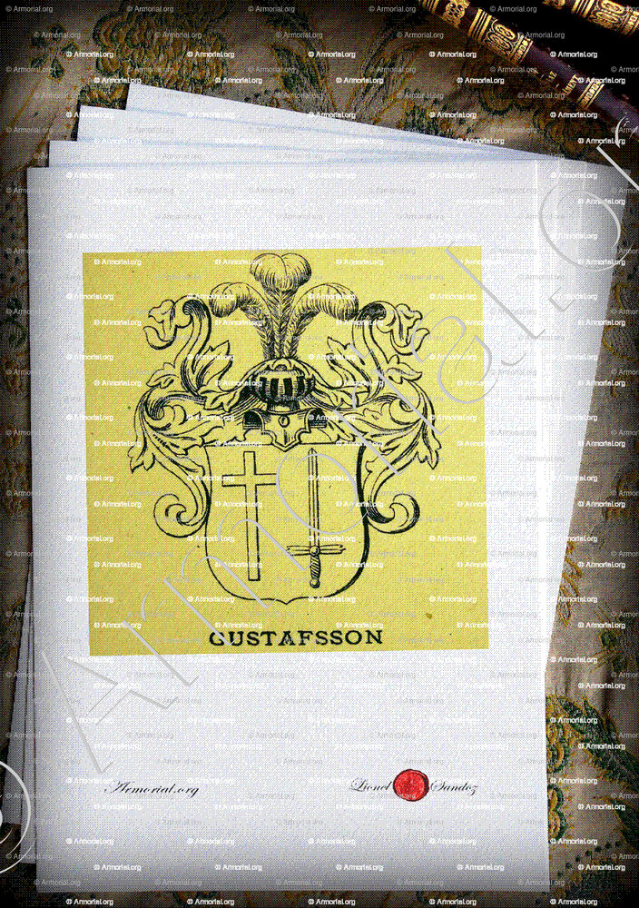 GUSTAFSSON est un nom qui s’accompagne d’un blason. Origine :Wappenbuch der Stadt Basel . B.Meyer Knaus 1880, Schweiz