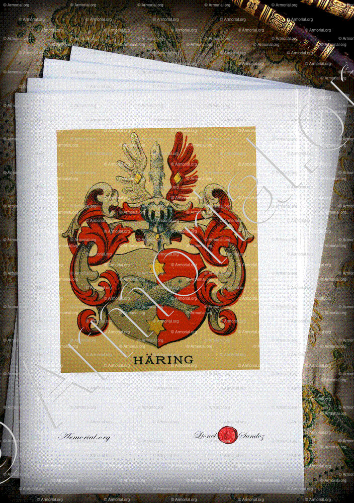 HAERING est un nom qui s’accompagne d’un blason. Origine :Wappenbuch der Stadt Basel . B.Meyer Knaus 1880, Schweiz
