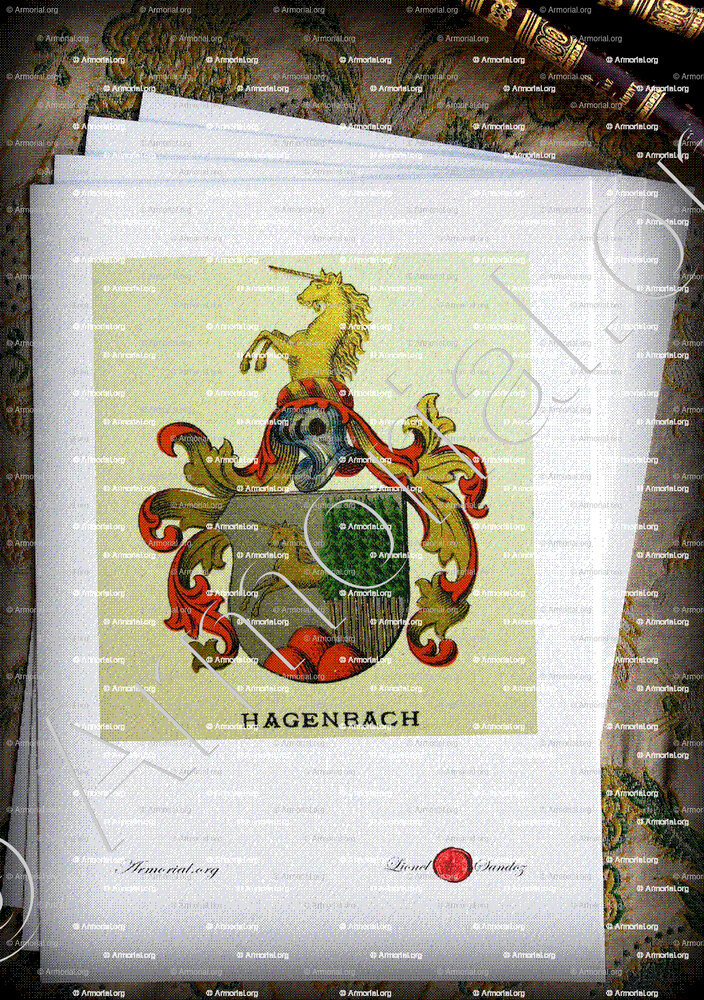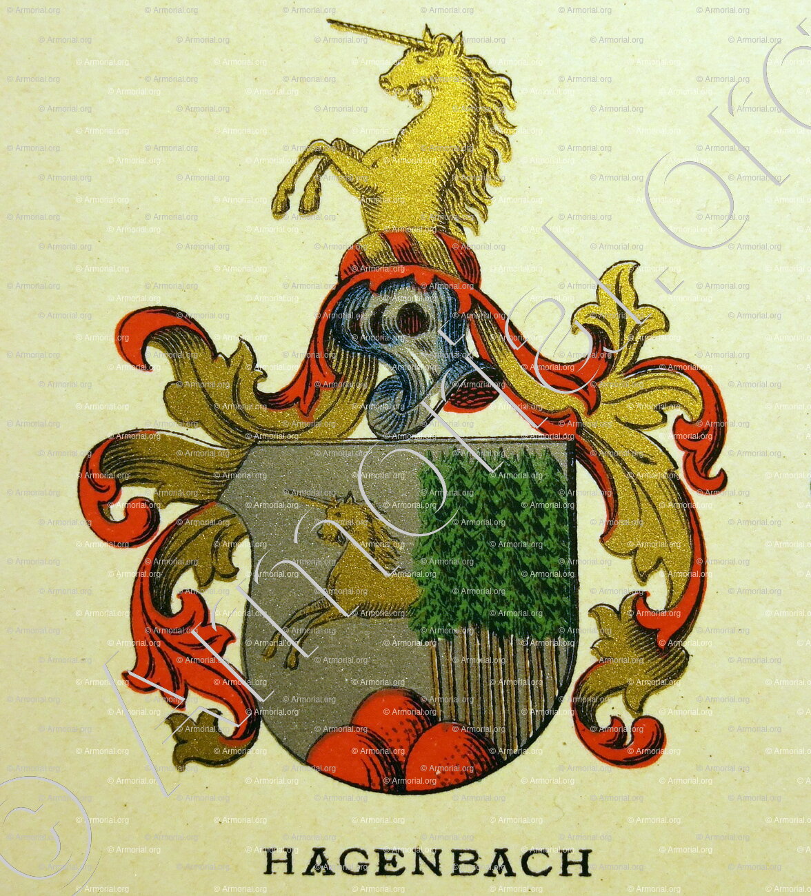 HAGENBACH est un nom qui s’accompagne d’un blason. Origine :Wappenbuch der Stadt Basel . B.Meyer Knaus 1880, Schweiz