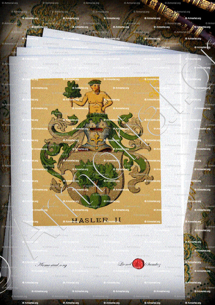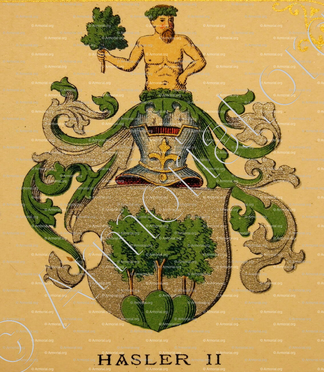 HASLER est un nom qui s’accompagne d’un blason. Origine :Wappenbuch der Stadt Basel . B.Meyer Knaus 1880, Schweiz