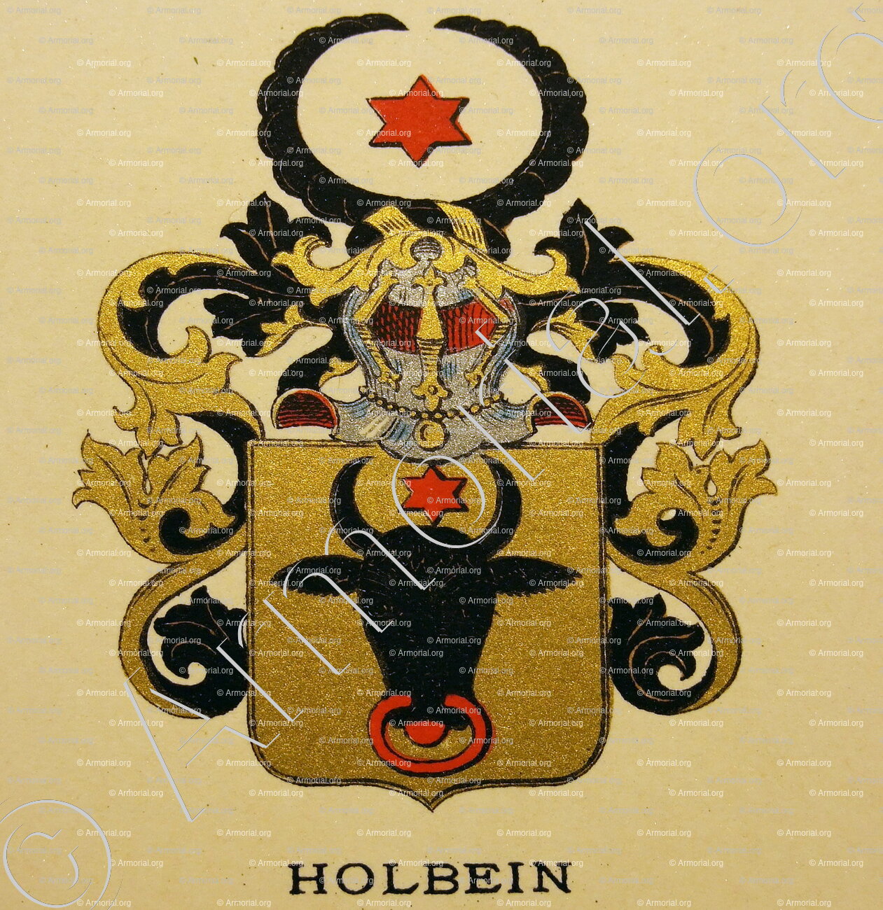 HOLBEIN est un nom qui s’accompagne d’un blason. Origine :Wappenbuch der Stadt Basel . B.Meyer Knaus 1880, Schweiz
