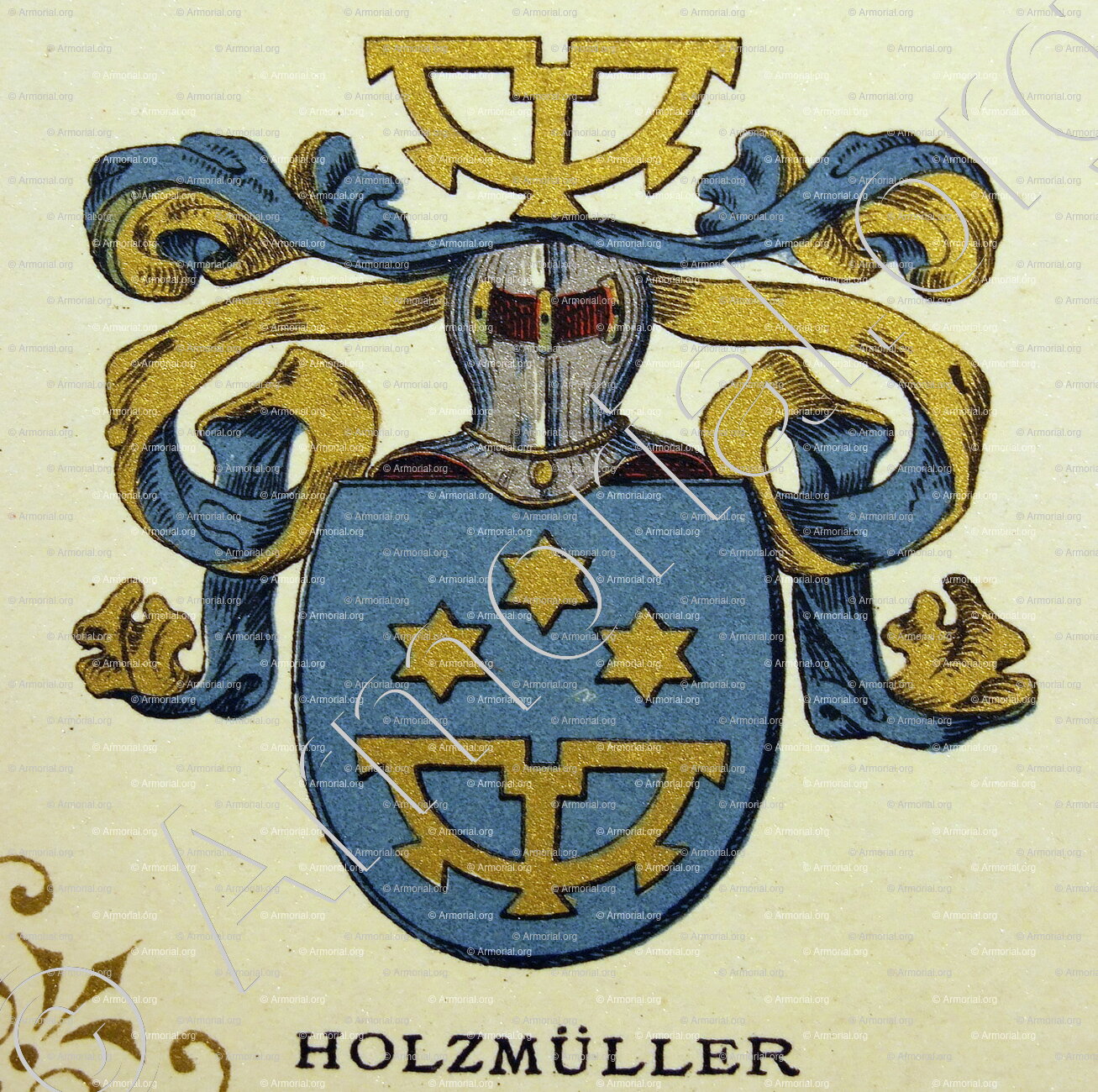 HOLZMÜLLER est un nom qui s’accompagne d’un blason. Origine :Wappenbuch der Stadt Basel . B.Meyer Knaus 1880, Schweiz