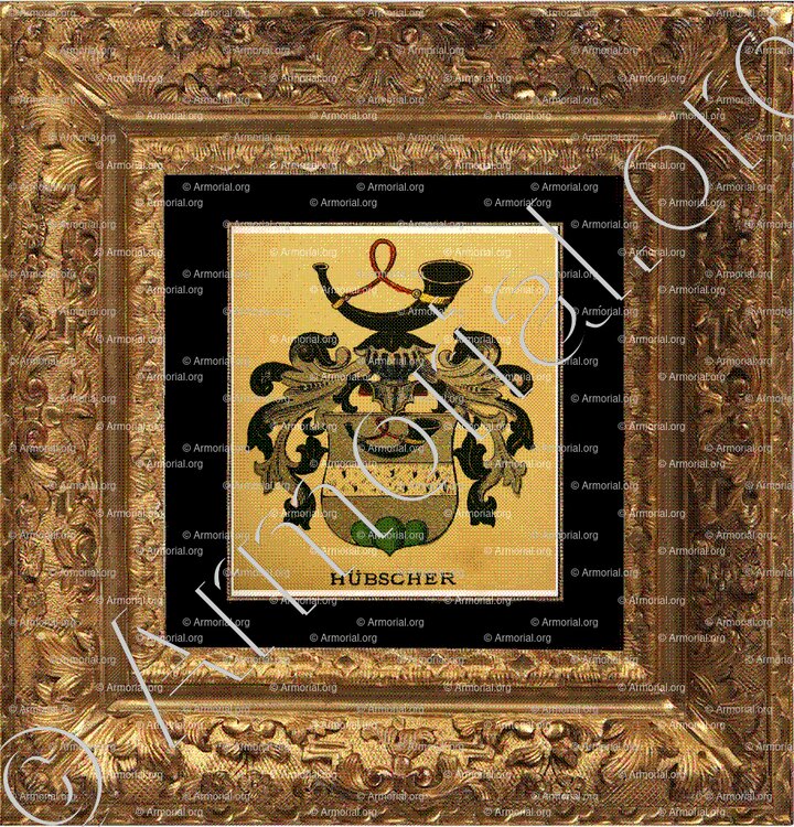 HÜBSCHER est un nom qui s’accompagne d’un blason. Origine :Wappenbuch der Stadt Basel . B.Meyer Knaus 1880, Schweiz