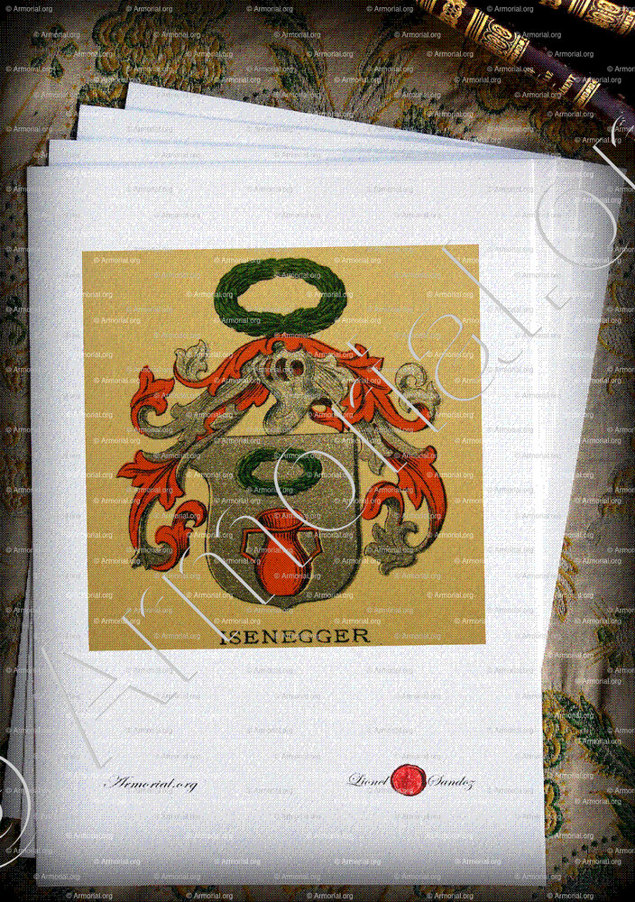 ISENEGGER est un nom qui s’accompagne d’un blason. Origine :Wappenbuch der Stadt Basel . B.Meyer Knaus 1880, Schweiz
