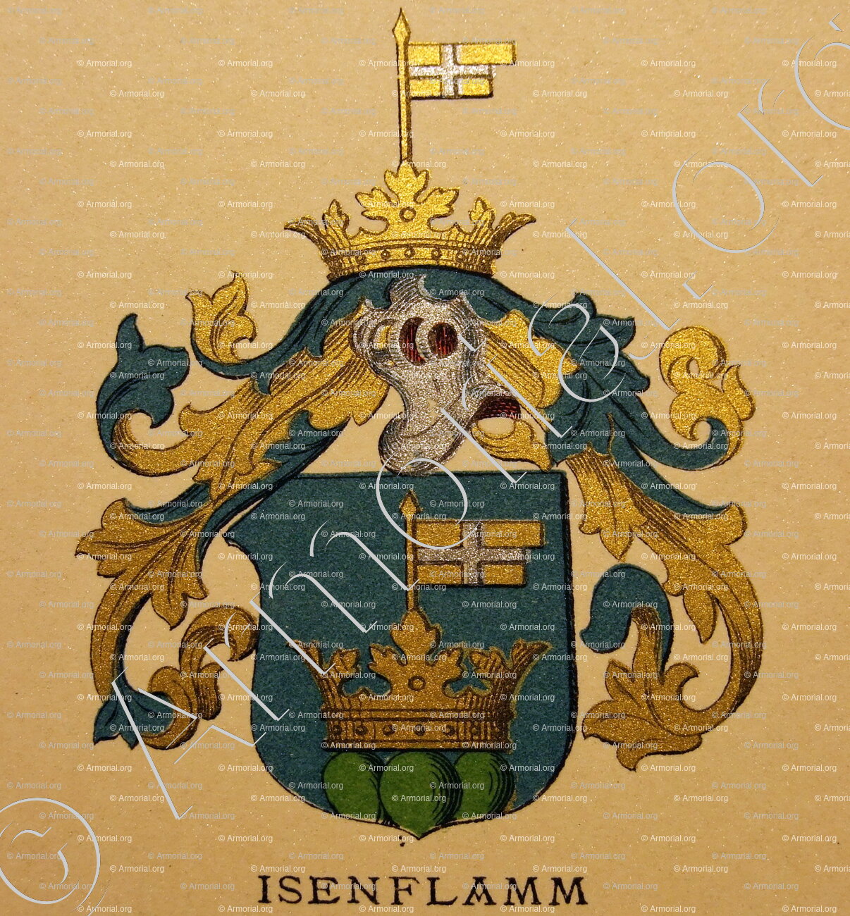 ISENFLAMM est un nom qui s’accompagne d’un blason. Origine :Wappenbuch der Stadt Basel . B.Meyer Knaus 1880, Schweiz