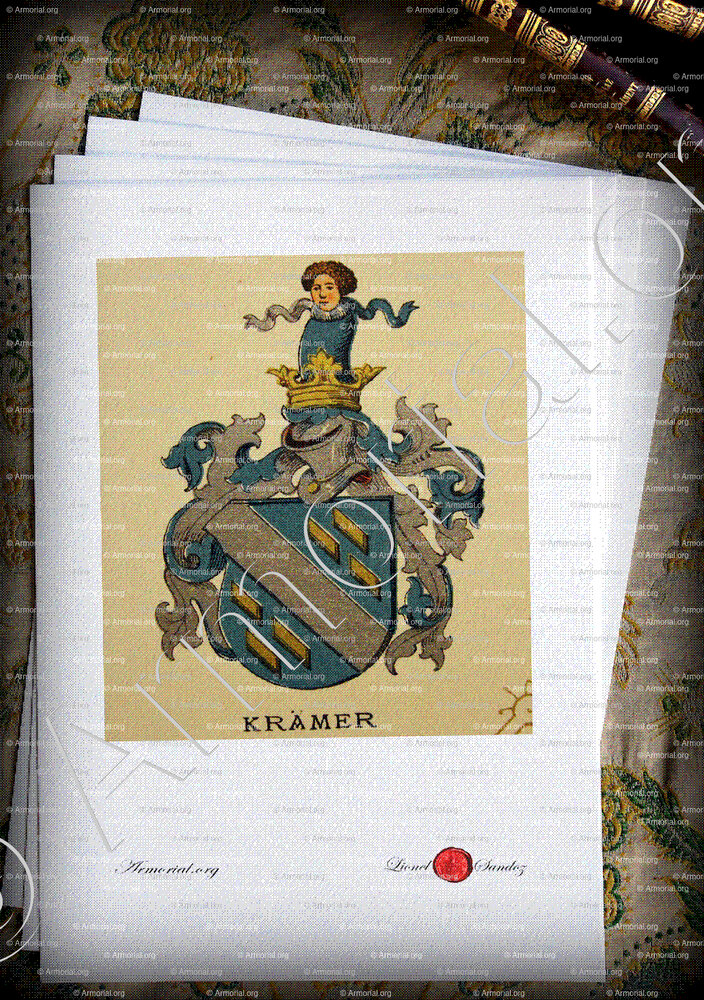 KRAEMER est un nom qui s’accompagne d’un blason. Origine :Wappenbuch der Stadt Basel . B.Meyer Knaus 1880, Schweiz