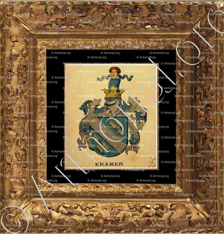 KRAMER est un nom qui s’accompagne d’un blason. Origine :Wappenbuch der Stadt Basel . B.Meyer Knaus 1880, Schweiz