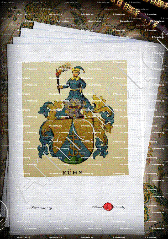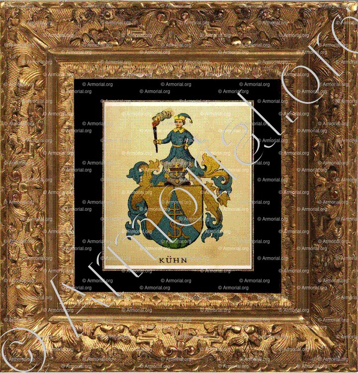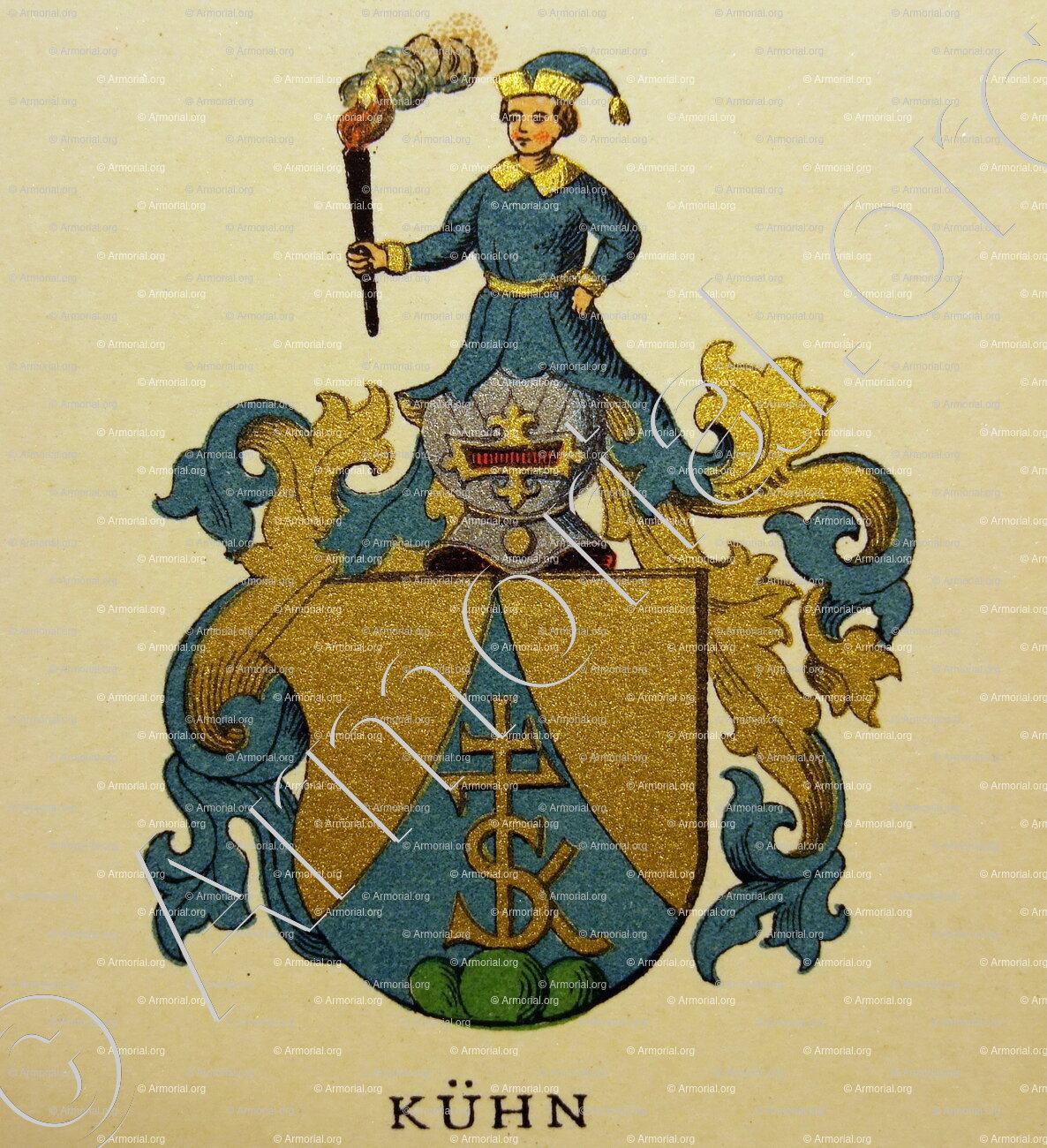 KÜHN est un nom qui s’accompagne d’un blason. Origine :Wappenbuch der Stadt Basel . B.Meyer Knaus 1880, Schweiz