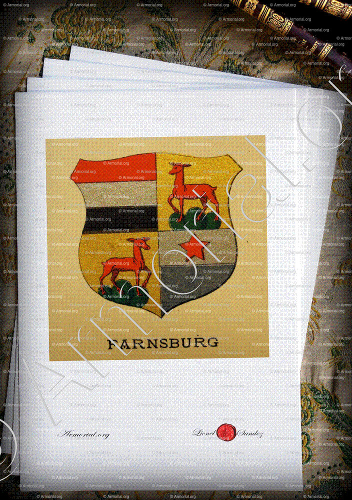 LANDVOGTEI FARNSBURG est un nom qui s’accompagne d’un blason. Origine :Wappenbuch der Stadt Basel . B.Meyer Knaus 1880, Schweiz