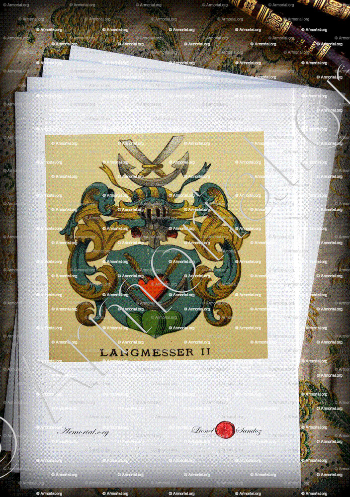 LANGMESSER est un nom qui s’accompagne d’un blason. Origine :Wappenbuch der Stadt Basel . B.Meyer Knaus 1880, Schweiz