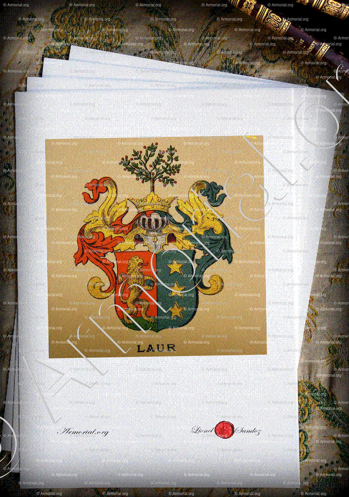 LAUR est un nom qui s’accompagne d’un blason. Origine :Wappenbuch der Stadt Basel . B.Meyer Knaus 1880, Schweiz
