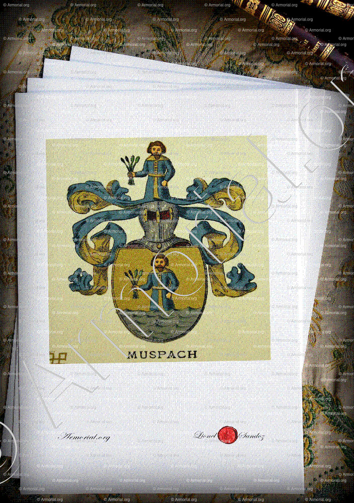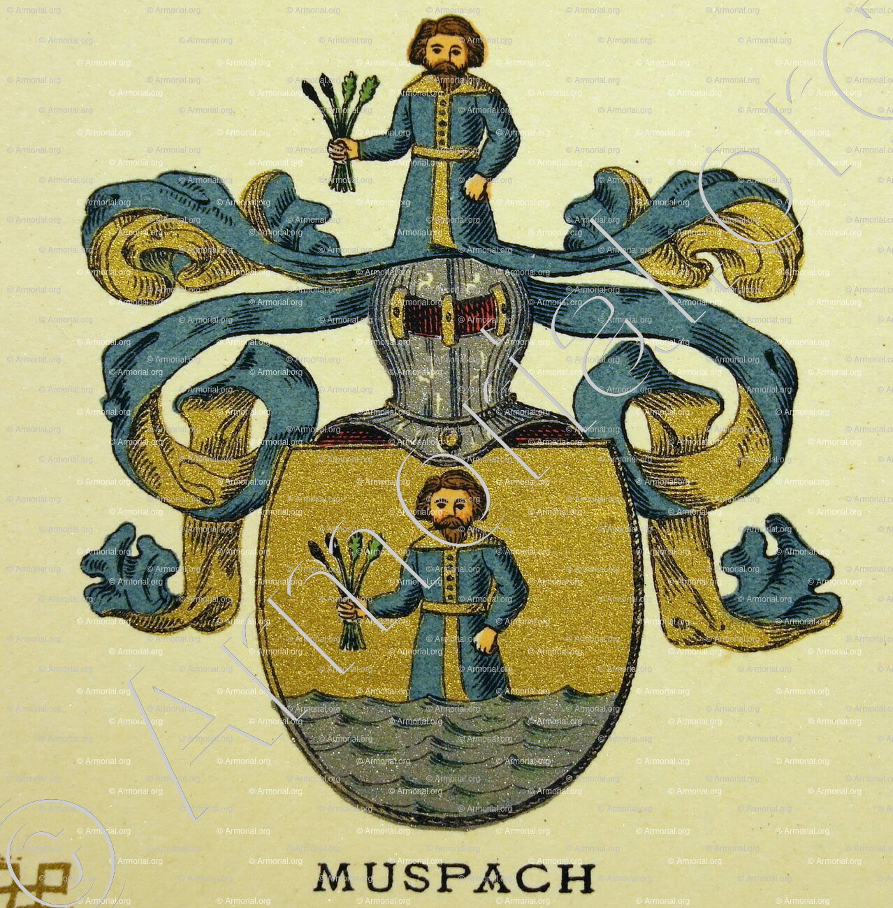 MUSPACH est un nom qui s’accompagne d’un blason. Origine :Wappenbuch der Stadt Basel . B.Meyer Knaus 1880, Schweiz