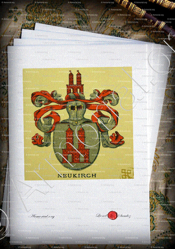 NEUKIRCH est un nom qui s’accompagne d’un blason. Origine :Wappenbuch der Stadt Basel . B.Meyer Knaus 1880, Schweiz