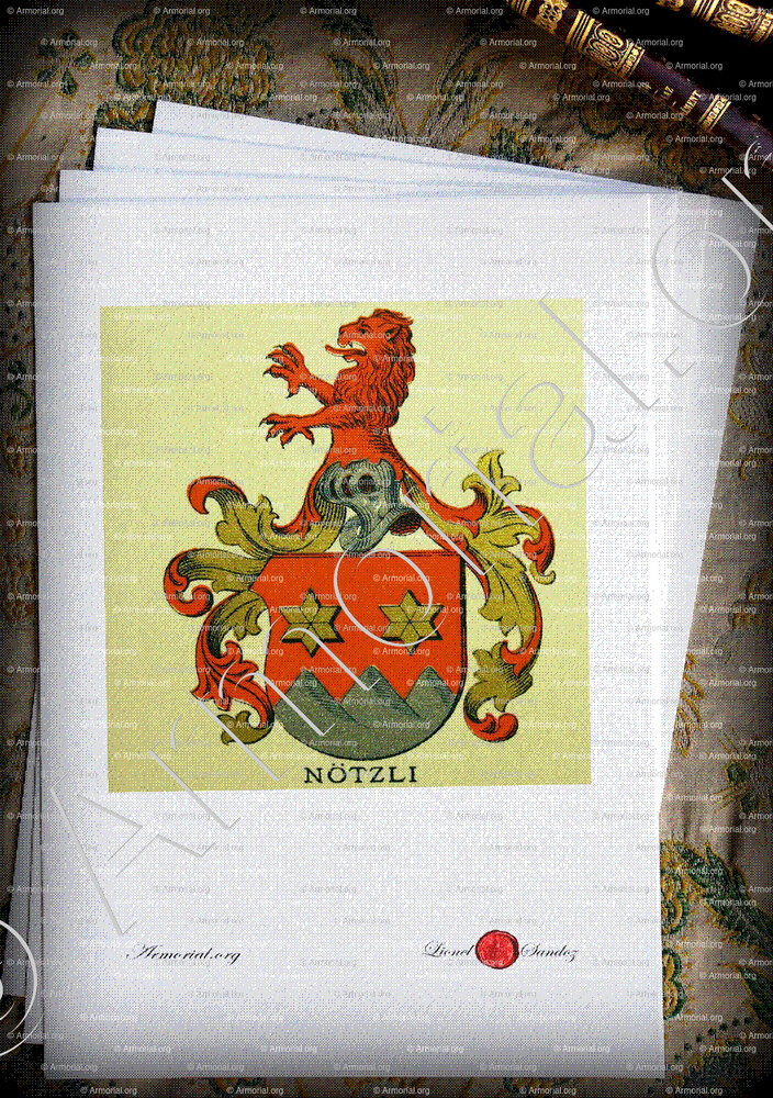 NÖTZLIN est un nom qui s’accompagne d’un blason. Origine :Wappenbuch der Stadt Basel . B.Meyer Knaus 1880, Schweiz