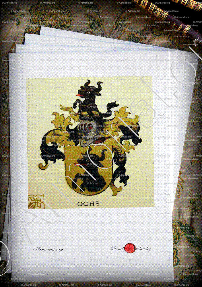 OCHS est un nom qui s’accompagne d’un blason. Origine :Wappenbuch der Stadt Basel . B.Meyer Knaus 1880, Schweiz