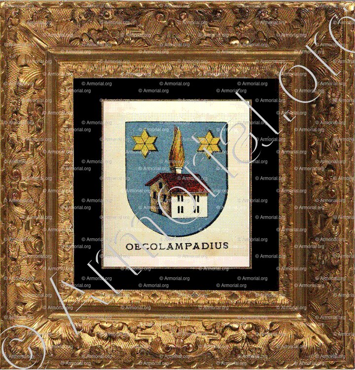 OECOLAMPADIUS est un nom qui s’accompagne d’un blason. Origine :Wappenbuch der Stadt Basel . B.Meyer Knaus 1880, Schweiz