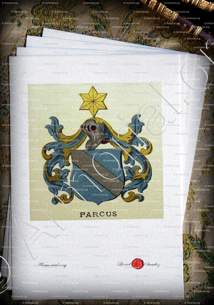 PARCUS est un nom qui s’accompagne d’un blason. Origine :Wappenbuch der Stadt Basel . B.Meyer Knaus 1880, Schweiz