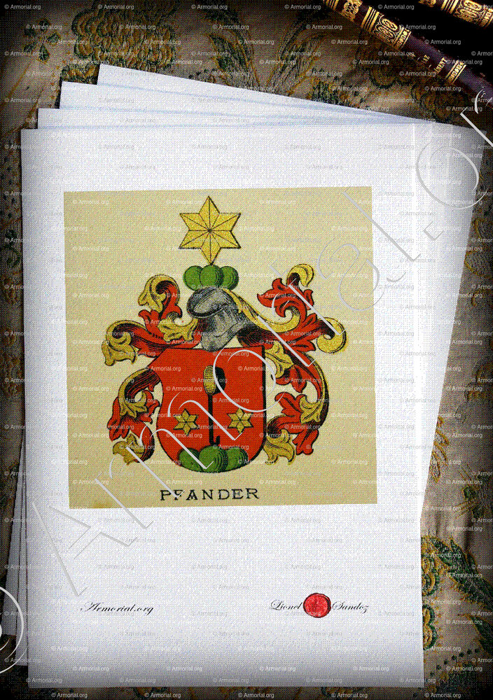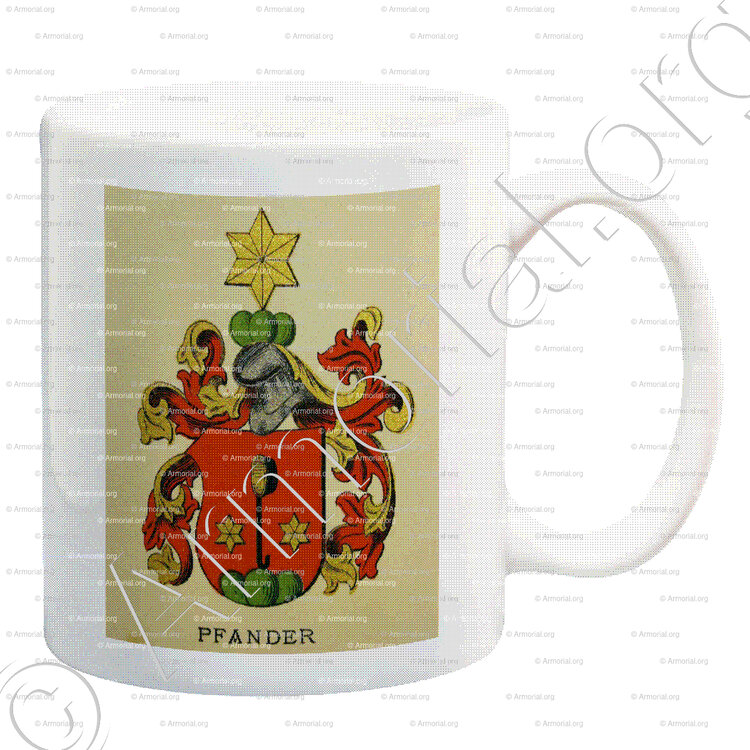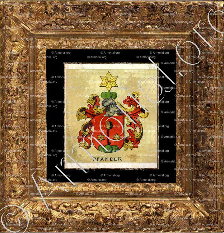PFANDER est un nom qui s’accompagne d’un blason. Origine :Wappenbuch der Stadt Basel . B.Meyer Knaus 1880, Schweiz