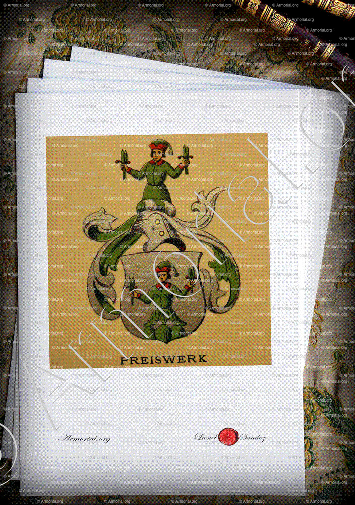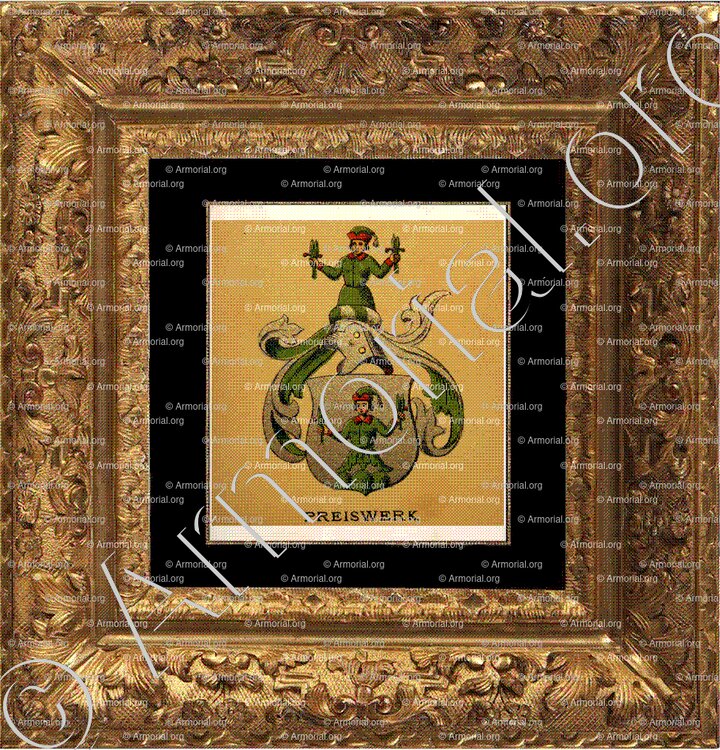 PREISWERK est un nom qui s’accompagne d’un blason. Origine :Wappenbuch der Stadt Basel . B.Meyer Knaus 1880, Schweiz