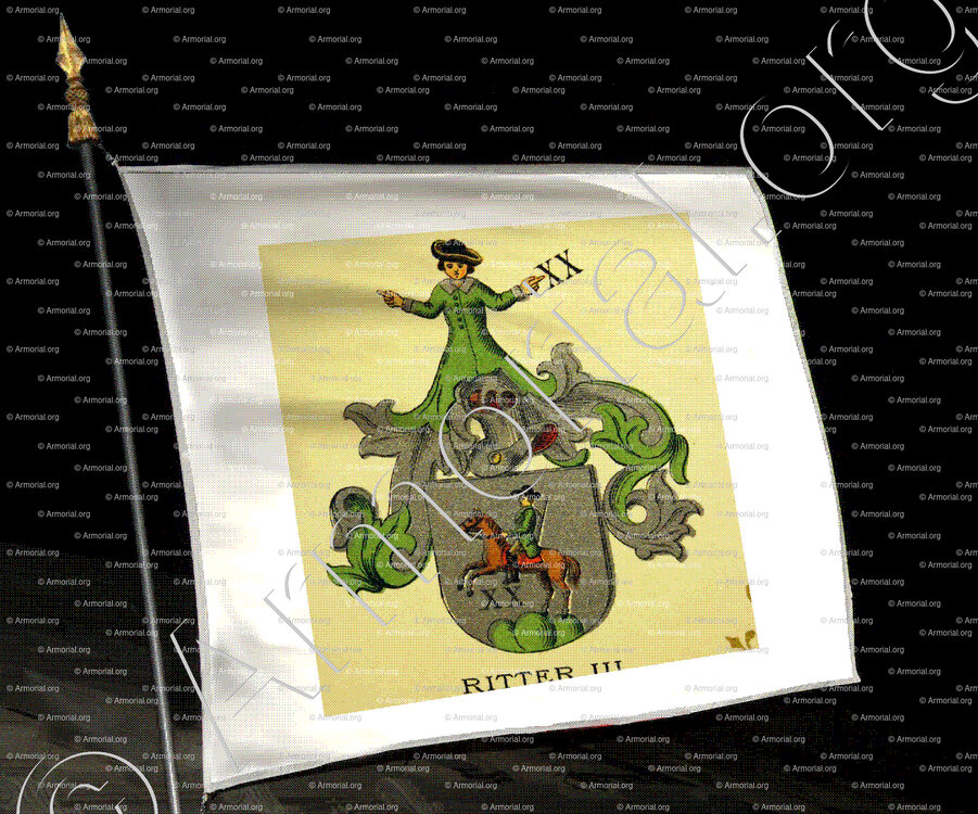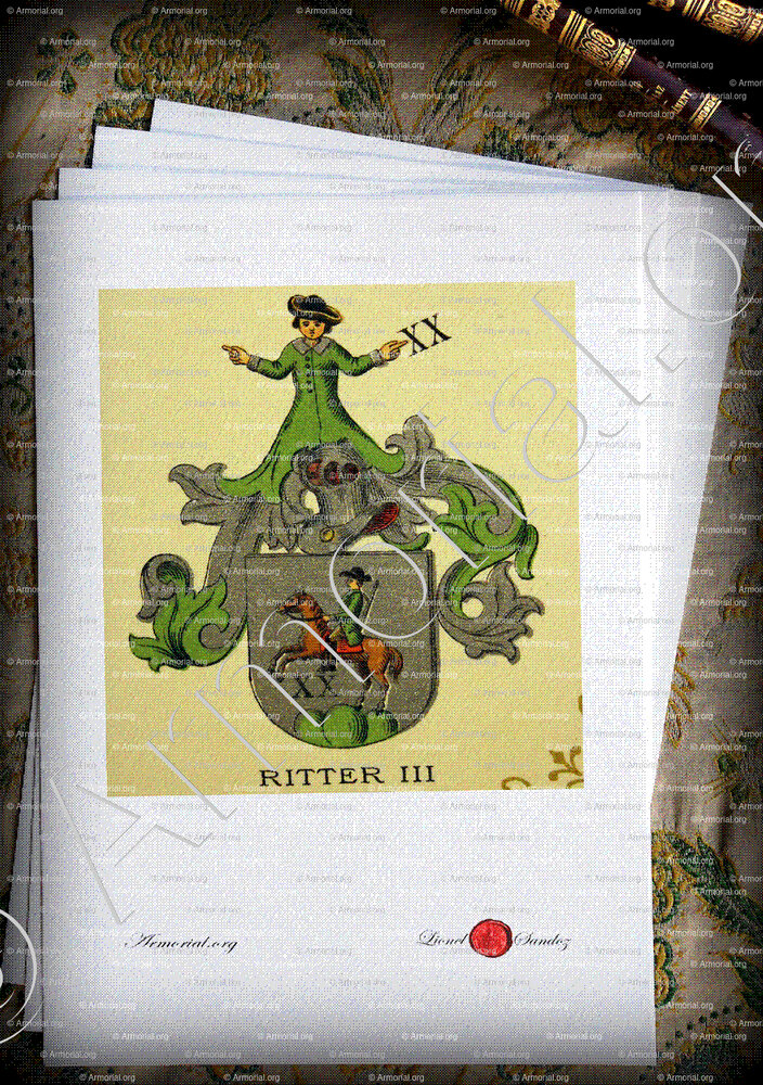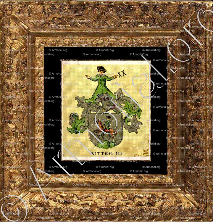 RITTER est un nom qui s’accompagne d’un blason. Origine :Wappenbuch der Stadt Basel . B.Meyer Knaus 1880, Schweiz