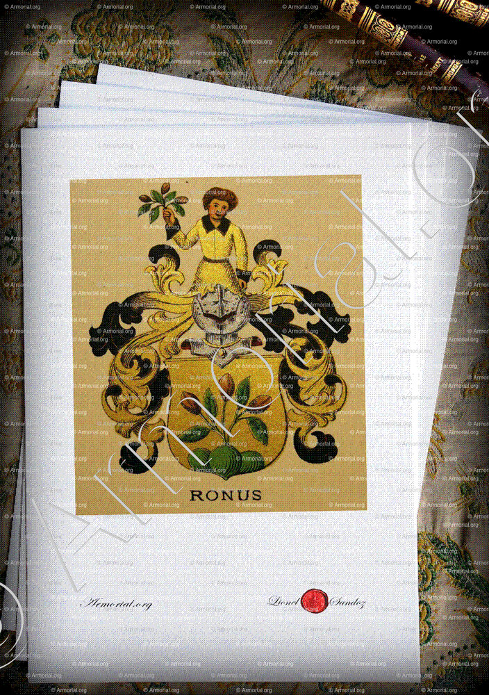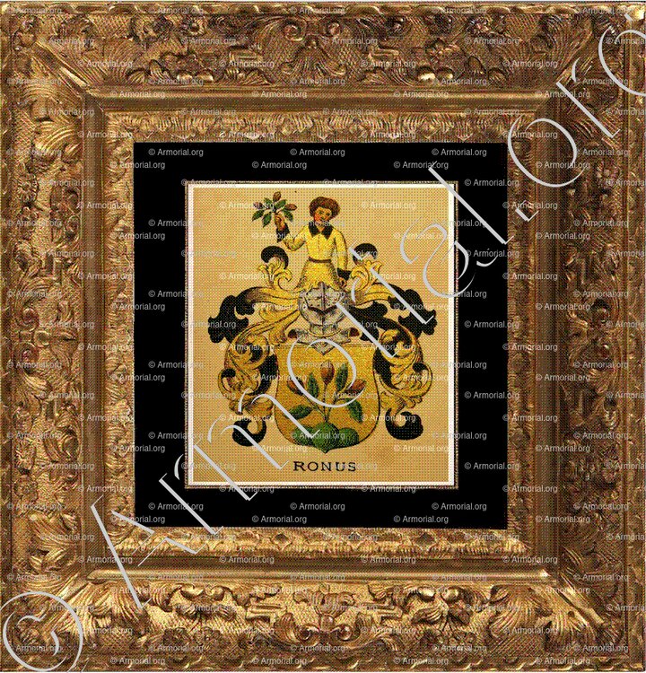 RONUS est un nom qui s’accompagne d’un blason. Origine :Wappenbuch der Stadt Basel . B.Meyer Knaus 1880, Schweiz