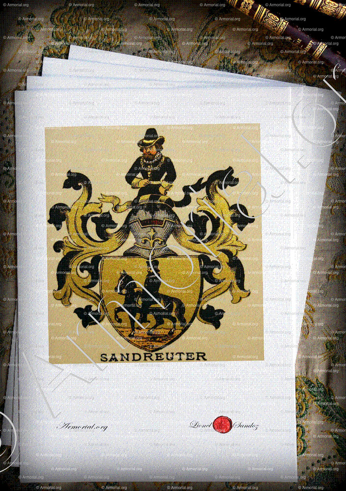 SANDREUTER est un nom qui s’accompagne d’un blason. Origine :Wappenbuch der Stadt Basel . B.Meyer Knaus 1880, Schweiz