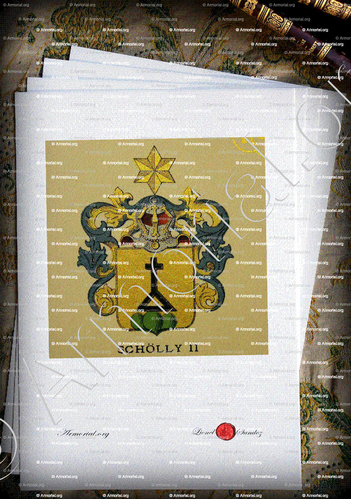 SCHOELLY est un nom qui s’accompagne d’un blason. Origine :Wappenbuch der Stadt Basel . B.Meyer Knaus 1880, Schweiz